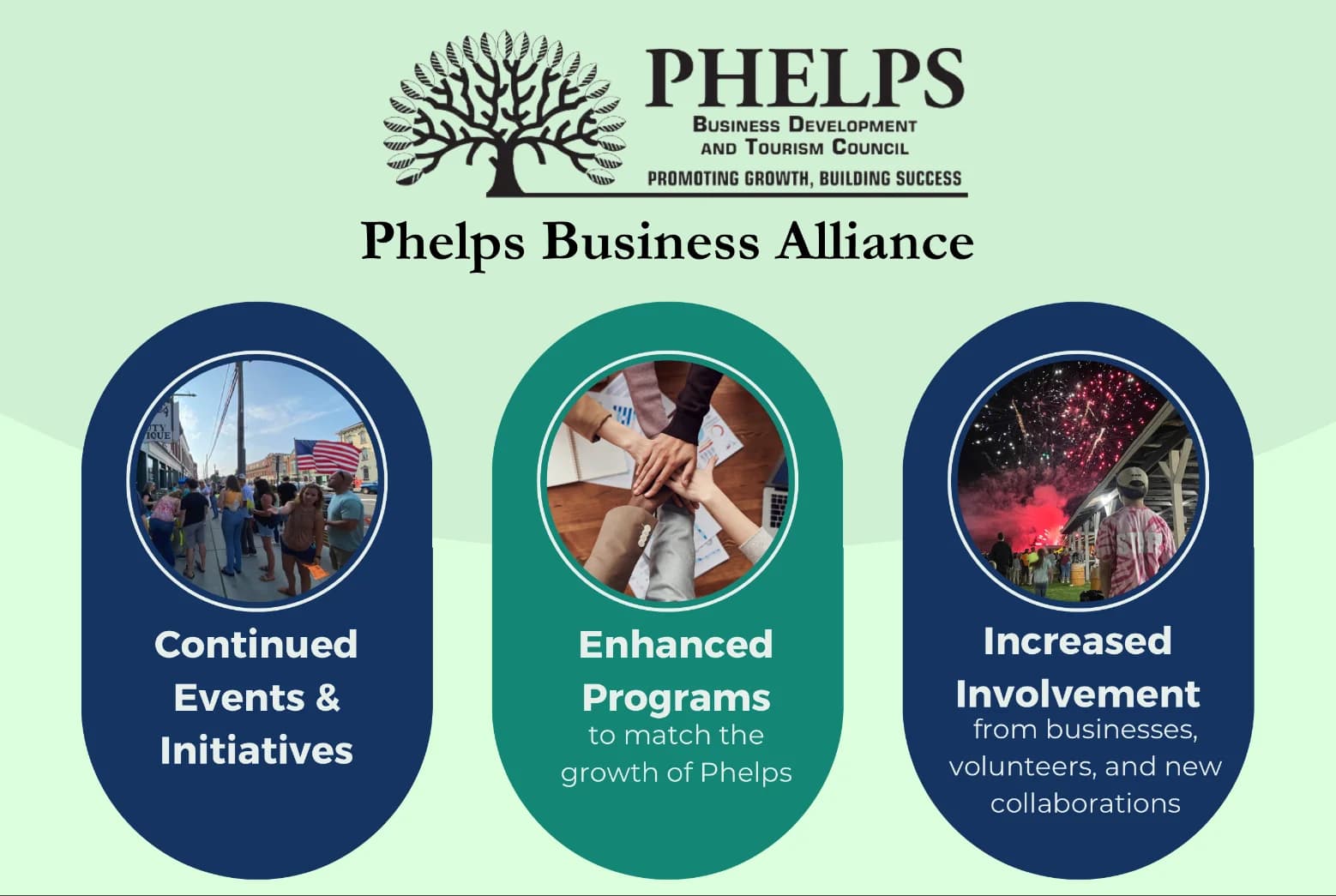 The mission of the Phelps Business Development & Tourism Council (BDTC) is to develop and implement a realistic and sustainable strategic plan that will allow the community of Phelps, New York to maintain its character, while taking advantage of its heritage, natural assets, talents and location to become an integral part of the economically robust Finger Lakes region.